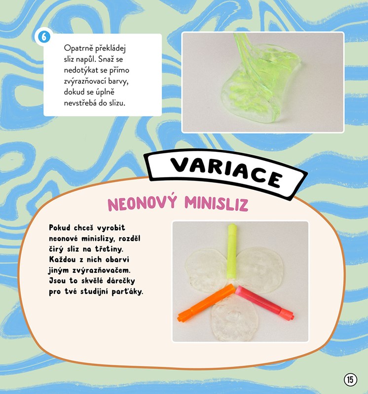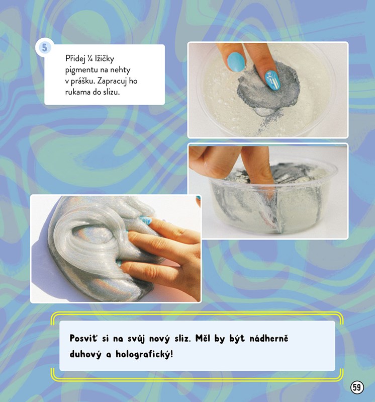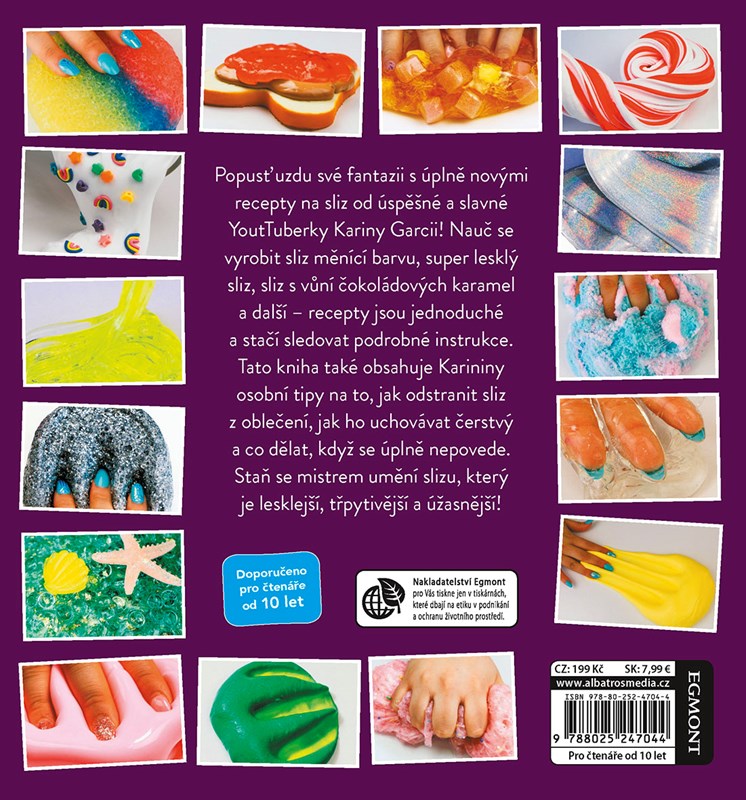 Popusť uzdu své fantazii s 15 úplně novými recepty na sliz od úspěšné a slavné YouTuberky Kariny Garcii! Nauč se vyrobit sliz měnící barvu, super lesklý sliz, sliz s vůní čokoládových karamel a další – recepty jsou jednoduché a stačí sledovat podrobné instrukce. Tato kniha také obsahuje Karininy osobní tipy na to, jak odstranit sliz z oblečení, jak ho uchovávat čerstvý a co dělat, když se úplně nepovede. Staň se mistrem umění slizu, který je lesklejší, třpytivější a úžasnější!