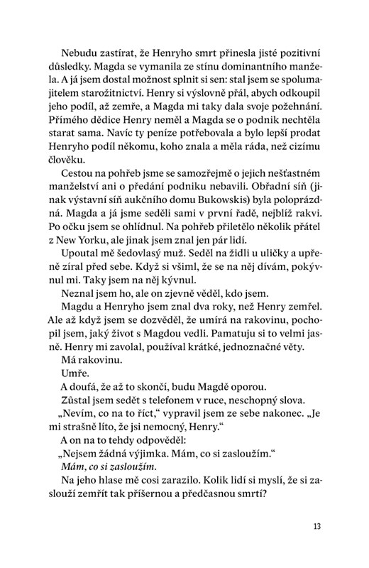 PrávnĂk Martin Benner miluje staroĹľitnosti. KdyĹľ jeho pĹ™Ătel Henry zemĹ™e, dostane Martin nabĂdku, kterĂ© nelze odolat: pĹ™evzĂt Henryho podĂl v obchodÄ› se staroĹľitnostmi v New Yorku. VzápÄ›tĂ mu ale nÄ›jakĂ˝ cizinec tvrdĂ, Ĺľe byl Henry zavraĹľdÄ›n, a Martinovi se zaÄŤnou postupnÄ› odhalovat temnĂ© obchodnĂ praktiky. Odlišit pravdu od lĹľi a pĹ™Ătele od nepĹ™Ătele je pro nÄ›j ÄŤĂm dál obtĂĹľnÄ›jšĂ. NavĂc nÄ›kdo zanechává stopy ve snÄ›hu u jeho domu. Kdo ho sleduje? Kdo byl doopravdy Henry Schiller? A co se stalo v den, kdy zemĹ™el?