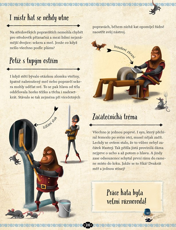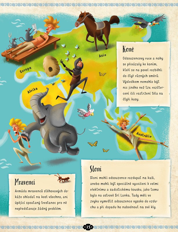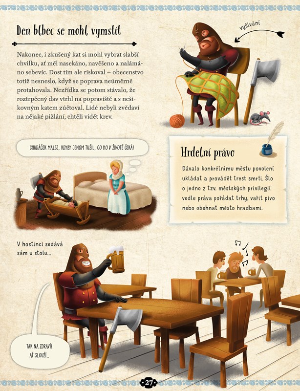 Gilotina. Už to slovo má zvláštní zvuk. A co teprve ten krátký okamžik, to břitké hvízdnutí, po němž odsouzenec už nikdy nic neslyšel… Francouzská gilotina se používala skoro 200 let a během té doby oddělila od trupu na 100 000 hlav! Každý národ v různých obdobích trestal své zlodějíčky a padouchy jinak, ale vždycky nápaditě. Svědčí o tom i názvy a přezdívky oblíbených mučících nástrojů – hora nářků, skřipec, Kapetova kravata, opilcova pláštěnka, palečnice nebo devítiocasá kočka. A když už jsme u těch zvířátek… Víte, k čemu se používala před několika tisíci lety? Přečtěte si o historii práva útrpného, která má říz!