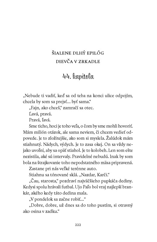 Nový román talentovanej Kristíny Ježovičovej o dievčati v zrkadle, ktoré vidí každá z nás a s ktorého pokrivenými slovami dennodenne bojujeme. Sme totiž cennejšie, ako sa nám snaží nahovoriť. Stačí ho prestať počúvať.