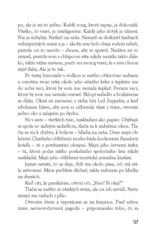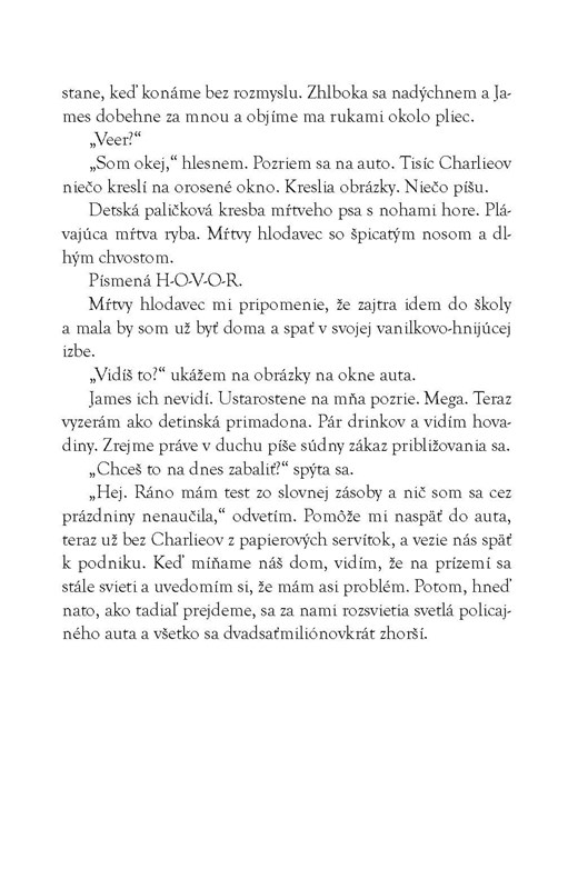 Dielo má necelých 340 strán, podobne ako väčšina youngadultoviek. Avšak, na rozdiel od nich, autorka sa nevenovala len jednej, no hneď viacerým postavám. Vera, Charlie, dokonca aj jej otec s mamou boli realisticky vyobrazení a prechádzali si zmenami.