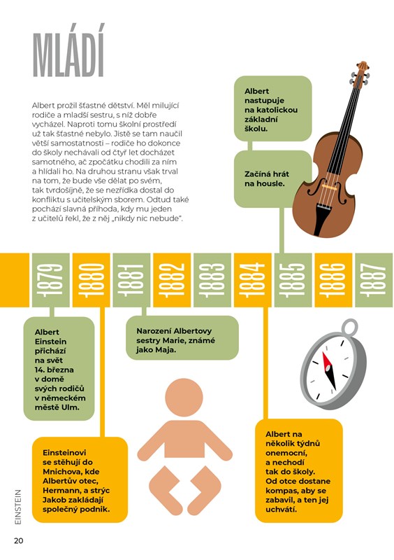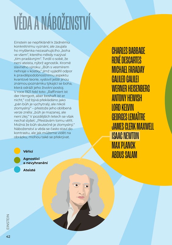 Tato originální kniha vás prostřednictvím přehledných a dobře zapamatovatelných grafů, statistik a zajímavostí provede životem jednoho z nejikoničtějších vědců historie a získáte díky ní ucelenu představu o tom, jak slavný Albert Einstein žil, pracoval a přemýšlel.