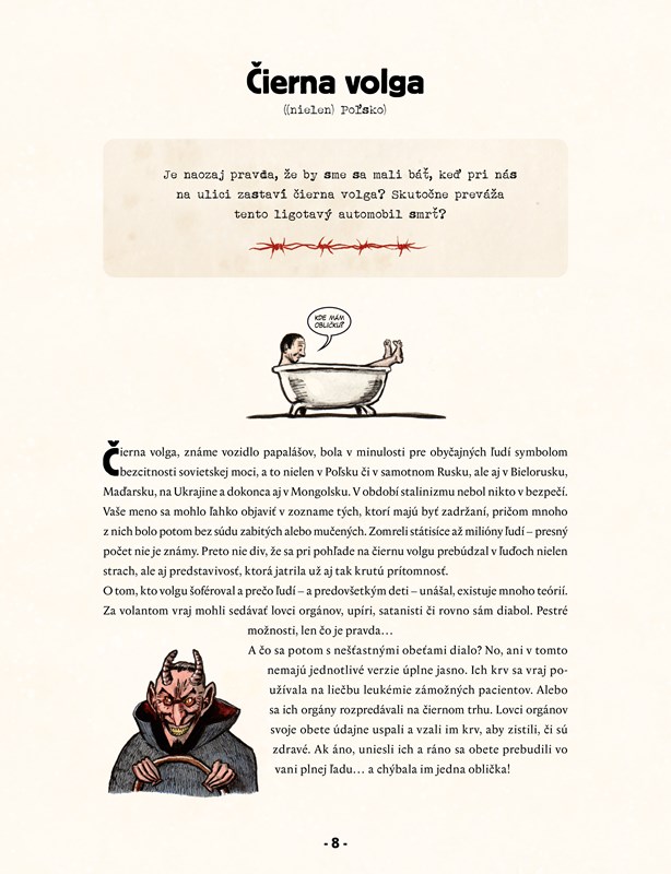 Možno si myslíte, že mestá sú vlastne dosť nudné – jediné, na čo tu môžete naraziť, sú uhundraní a neustále sa náhliaci spoluobčania, nič viac. Hľadať v nich nejaké tajomné a hrôzostrašné príbehy? Kdeže! Ak patríte k ľuďom s rovnakým názorom, veľmi sa mýlite. Kniha Mestské legendy vás zavedie do tmavých zákutí miest a priamo pred vašimi očami doslova zosnuje sieť tých najznámejších, ale aj menej známych mestských legiend. Radíme vám: ak vám je život milý, nenastupuje do podivnej čiernej volgy či do polnočného autobusu… A smrtiaci hotelový ventilátor? Ani ten vás po prečítaní tejto knižky už neprekvapí. Ak sa teda nebojíte, vydajte sa po stopách novodobých povestí a mýtov…