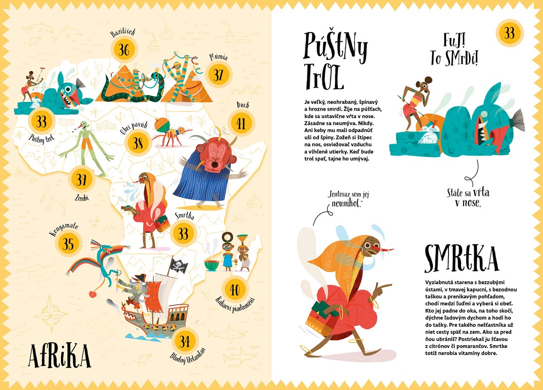 Strašidlá boli, sú a budú, o tom nemôže byť pochýb. Ak chceš vedieť, aké strašidlá mátožia v Európe, v Ázii a na ďalších kontinentoch, prečítaj si tento Svetový atlas strašidiel a duchov. Na nasledujúcich stránkach zistíš, ktoré strašidlá sú nebezpečné – a je lepšie sa im radšej vyhýbať – a ktoré sú naopak mierne ako baránok. Dozvieš sa, čo od nich môžeš čakať, ale i to, ako sa tým zlomyseľnejším tvorom ubrániš, keď na nich náhodou narazíš.