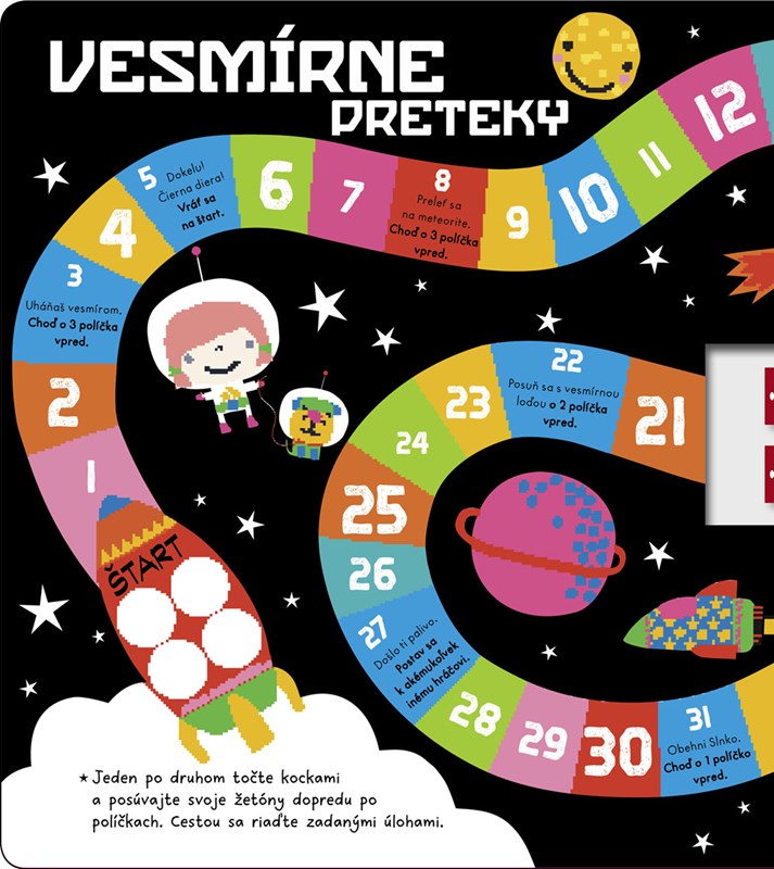 Budete sa rútiť po pretekárskej dráhe, putovať na medvedí piknik, lietať vesmírom, prepletať sa pomedzi hady alebo hrať Človeče, nehnevaj sa! s dinosaurami.