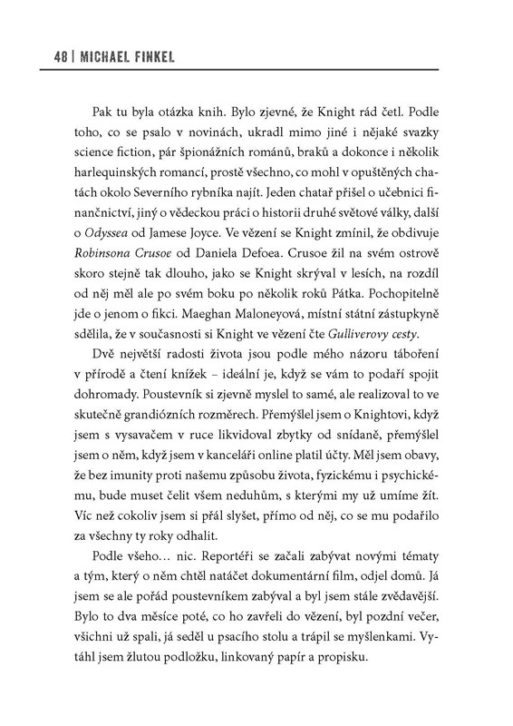 Portrét „posledního opravdového poustevníka“ zmapoval na základě detailních rozhovorů přímo s Knightem bestsellerista Michael Finkel.