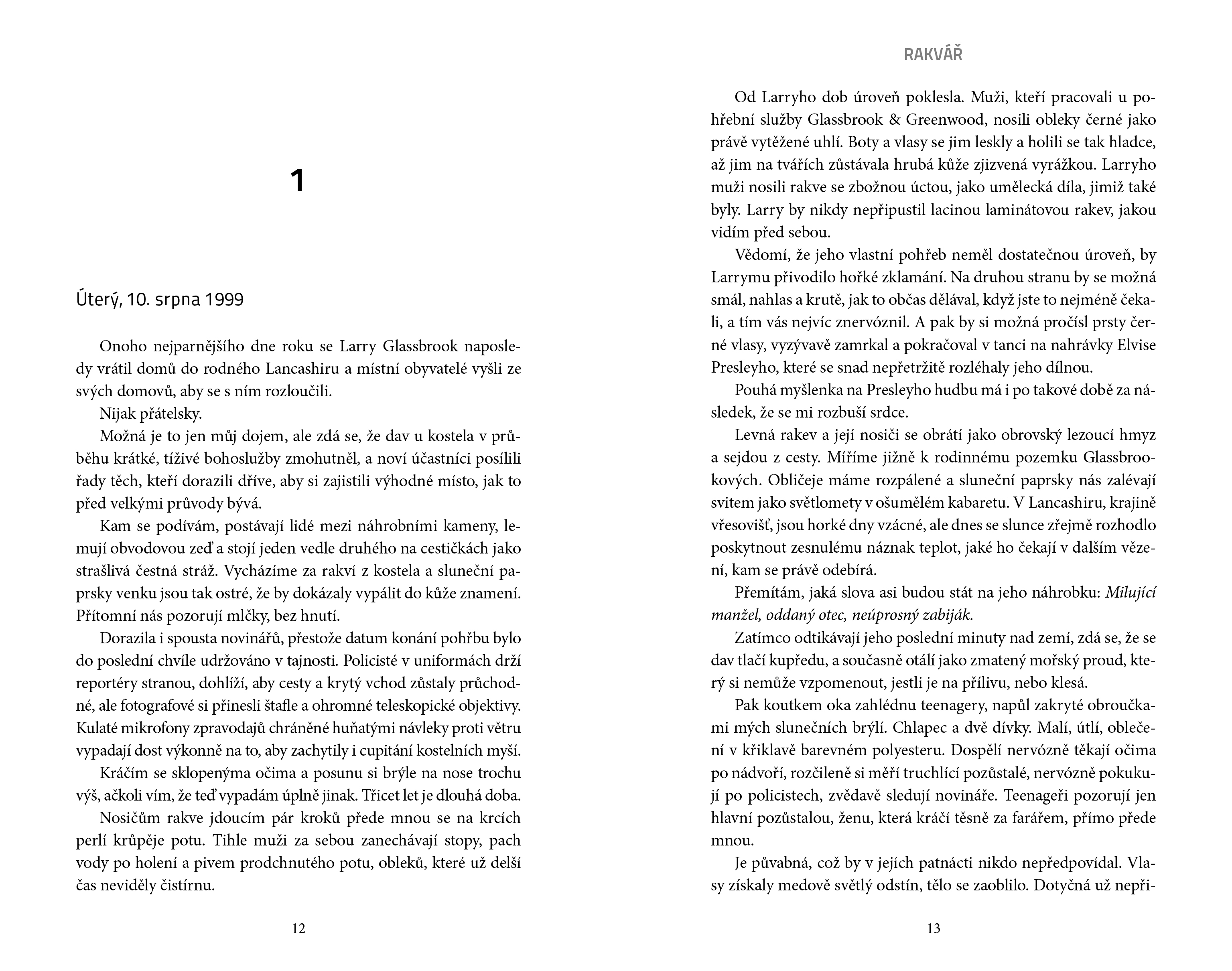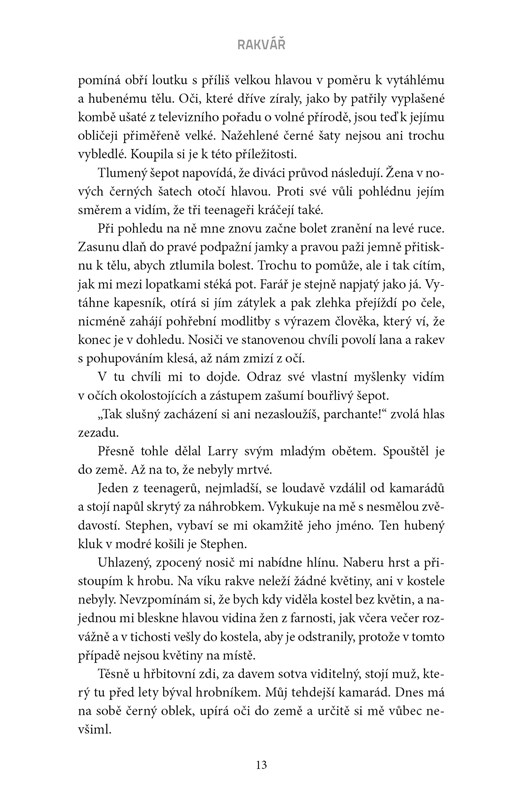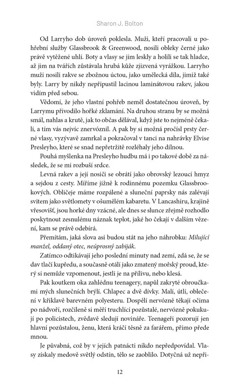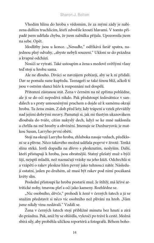 Srpen 1999 V úporně horkém dni se policistka Florence Loveladyová účastní pohřbu muže, kterého před třiceti lety usvědčila z několika vražd. Glassbrook, velmi zručný truhlář a majitel pohřební služby, tehdy své oběti věznil a pak je zaživa pohřbíval ve vlastnoručně zhotovených rakvích. A na důkaz zvrhlosti své mysli do každé rakve přidal hliněnou sošku, která nesla předsmrtnou podobu zavražděného člověka. Červen 1969 Třináctiletá Patsy je už třetí dívkou, která v průběhu několika měsíců zmizela beze stopy. Případ pohřešovaných teenagerů dostane na starost naprosto nezkušená Florence Loveladyová, která je u policie jenom krátce a zatím se spíš rozkoukává. Jak naloží s podivným svědectvím školních dětí, které tvrdí, že slyšely volání o pomoc z nedávno vykopaného hrobu? Srpen 1999 Florence se snaží vyrovnat s démony vlastní minulosti. Něco ji neodbytně táhne do starého Glassbrookova domu, kde učiní hrůzný nález. Hliněnou sošku, která věrně zachycuje její podobu. Znamená to snad, že je vrah stále na svobodě? Hrozí Florence nebezpečí? A je možné, že tentokrát je v mnohem větším ohrožení, než by si vůbec dokázala představit?