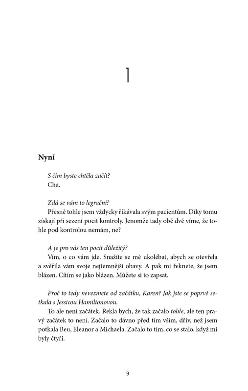 Karen byla odjakživa tím, ke komu si všichni ostatní přicházejí pro pomoc. Nejen její nejlepší kamarádky Bea a Eleanor, ale také pacienti, protože se stala psychiatričkou.