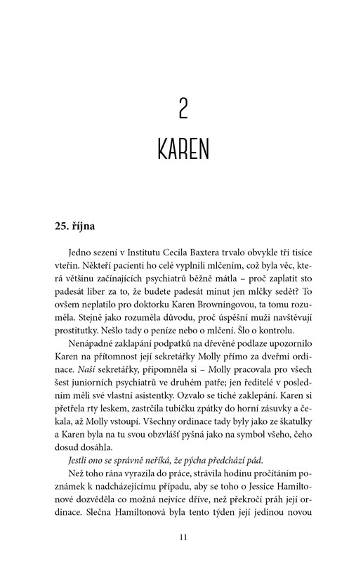 Ale nejvíce znepokojující je to, že o Karen ví celou řadu věcí, které by jako pacientka vědět neměla. Zná podrobnosti jejího osobního života, má informace o Kareniných přátelích...