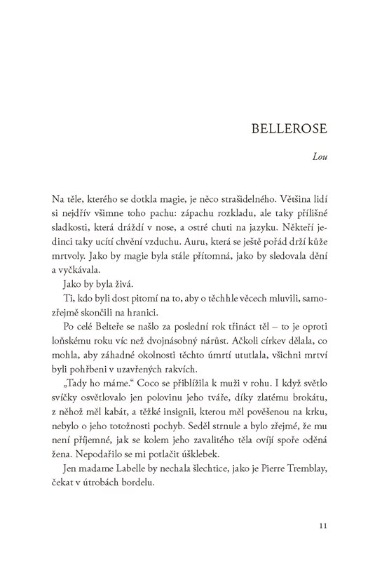Louise le Blancová před lety uprchla od všeho, co znala, a skryla se v ulicích Cesarine. Odvrhla svou magii a začala přežívat jen díky tomu, co se jí podařilo ukrást. Čarodějnice jako Lou tady lidi loví. Bojí se jich. A upalují je.