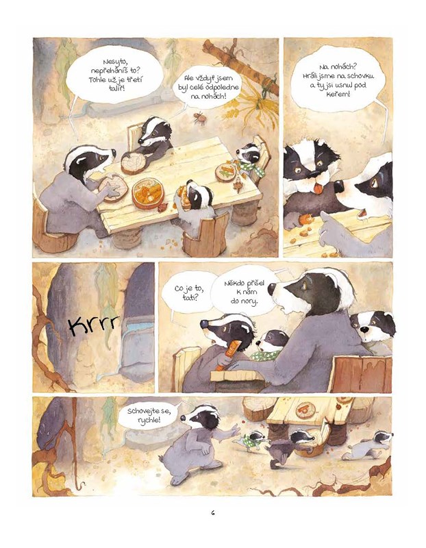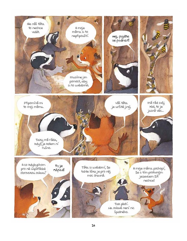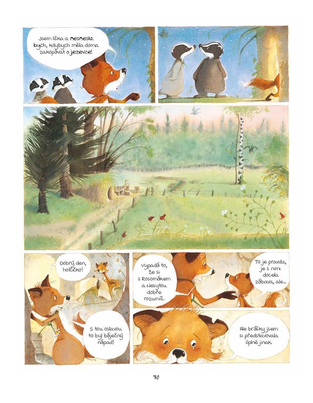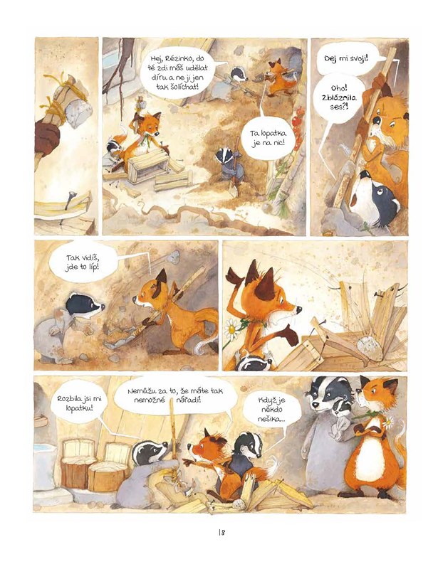 Jezevci jsou pomalí a opatrní. Lišky jsou drzé a rychlé. Jezevci jsou pořádní, lišky nepořádnice. Rozhodně nemají nic společného. Ale když lovci vyženou paní Lišku s Rézinkou z jejich nory, zabydlí se u vdovce pana Jezevce a jeho třech dětí. Uf! Nesyta, Rosomák a Rézinka mají VELKÝ PLÁN jak rodiče trochu změnit… ale ukáže se, že to dá hodně práce… aby nakonec zjistili, že to tak dál nejde!