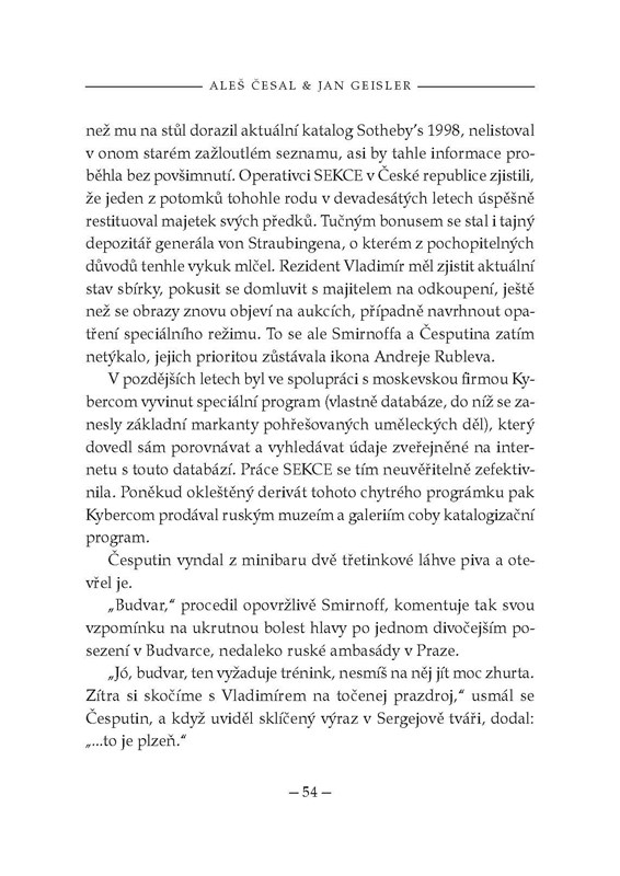 Mysteriózní příběh s prvky špionážního thrilleru zavede čtenáře do labyrintu znepokojivých skutečností. Originální fabulace autorů se prolíná s reálnými historickými fakty.