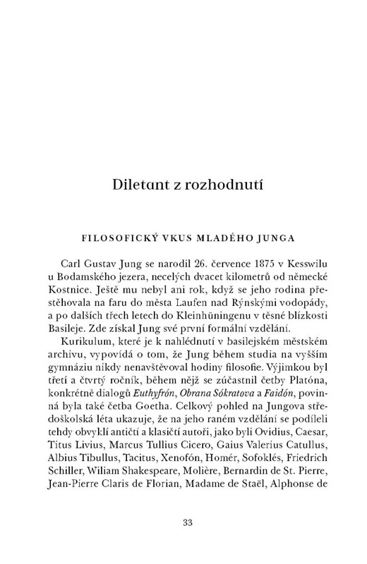 C. G. Jung (1875–1961) patří k nejvýznamnějším psychologům 20. století a jeho dílo se i dnes po zásluze těší velkému zájmu. Kniha odkrývá tu stránku jeho díla, která v českém prostředí zůstává téměř neznámá. Ukazuje, jakým způsobem byl C. G. Jung při tvorbě svých klíčových psychologických konceptů ovlivněn filosofickými myšlenkami (zejména Kantem, Schopenhauerem, Leibnizem a Carusem) a jak tito myslitelé předurčili jeho ústřední pojem nevědomí a s ním související pojmy jako archetyp, individuace či libido. Kniha je hlubokou sondou do základů Jungova přemýšlení o povaze psyché, ale i do jeho snah nalézt odpovědi na obecnější otázky, které si pokládal již jako mladý student. Nahlédneme tak i do nejranějších Jungových přednášek, kde můžeme poprvé sledovat nejen jeho vlastní myšlení, ale i vlivy, které ho po celý život utvářely.