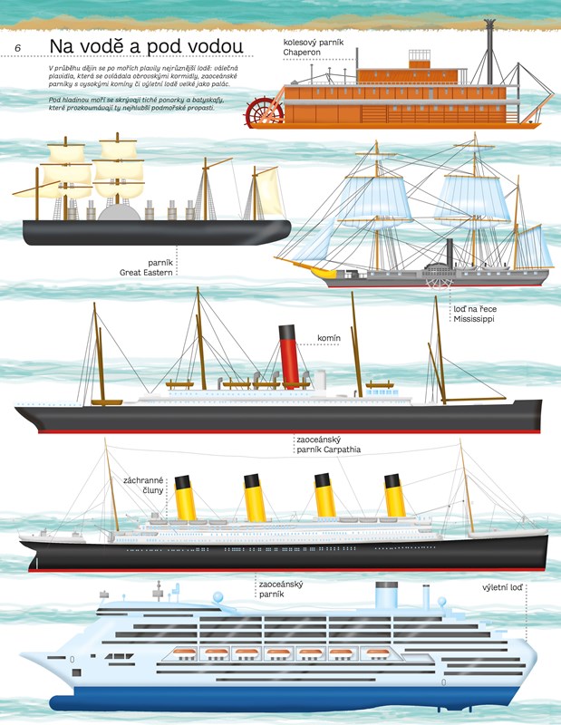 Kniha plná obrázků, v níž najdete spoustu létajících strojů a plavidel, které znáte, a dokonce i těch, které jste nikdy neviděli. Zaoceánské parníky a výletní lodě, plachetnice a malé čluny, obrovské vzducholodě a ultralehké vrtulníky, dopravní a nákladní letadla, kosmické lodě a sondy, vojenské letouny a bitevní lodě, to všechno a mnohem více vás čeká na stránkách této knihy.