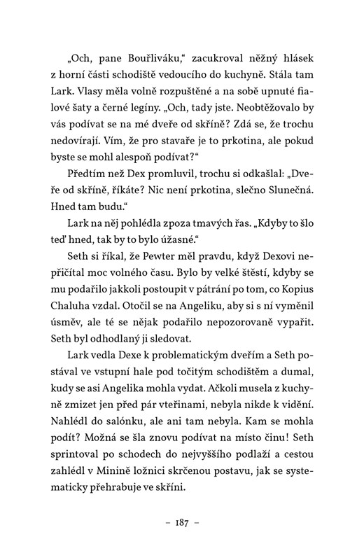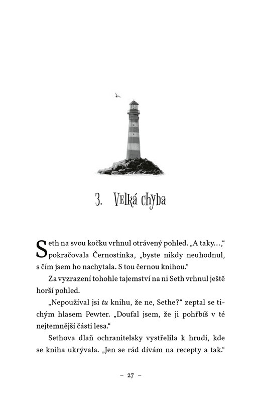 Během vyšetřování vraždy v hotelu Poslední naděje se Seth seznámil se světem magie. A nebyl by to Seth, kdyby se zase do něčeho nezapletl. Tentokrát se spolu se svou kočkou Černostínkou dostane na odlehlý maják Hadihněv, kde bude pomáhat vyšetřovat vraždu výstřední majitelky, Miny Mintecress. Podaří se mu v sobě objevit jiskřičku magie a odhalit zlo, než bude pozdě?
