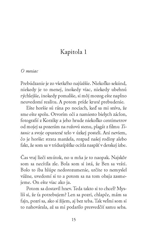 Vďaka nútenému oddychu má zároveň čas zamyslieť sa nad tým, kedy došlo k odlúčeniu a čo bolo v skutočnosti príčinou. Autorka nám tak umožnila nahliadnuť do vnútra hlavnej hrdinky a pochopiť jej veľkú bolesť.
