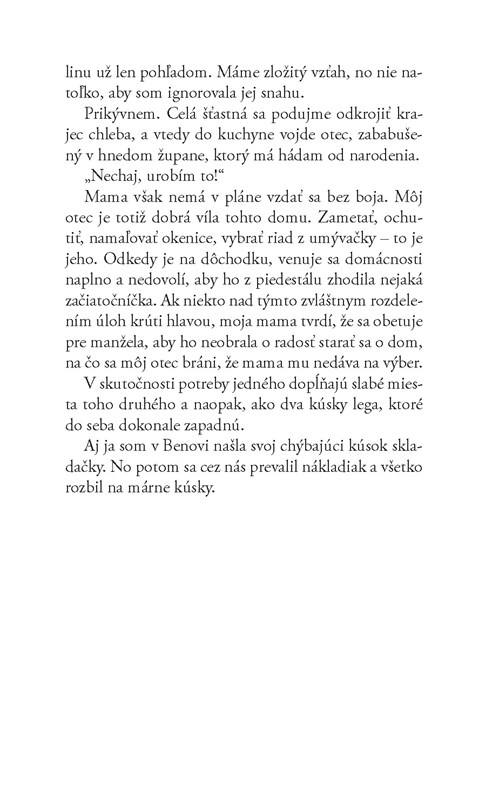 Ide tak o naozaj nádherný príbeh, o akúsi úprimnú spoveď, v ktorom sa humorné situácie striedajú s tými smutnejšími. Zabavíte sa, no zároveň si poplačete a pouvažujete nad prchavosťou okamihov.