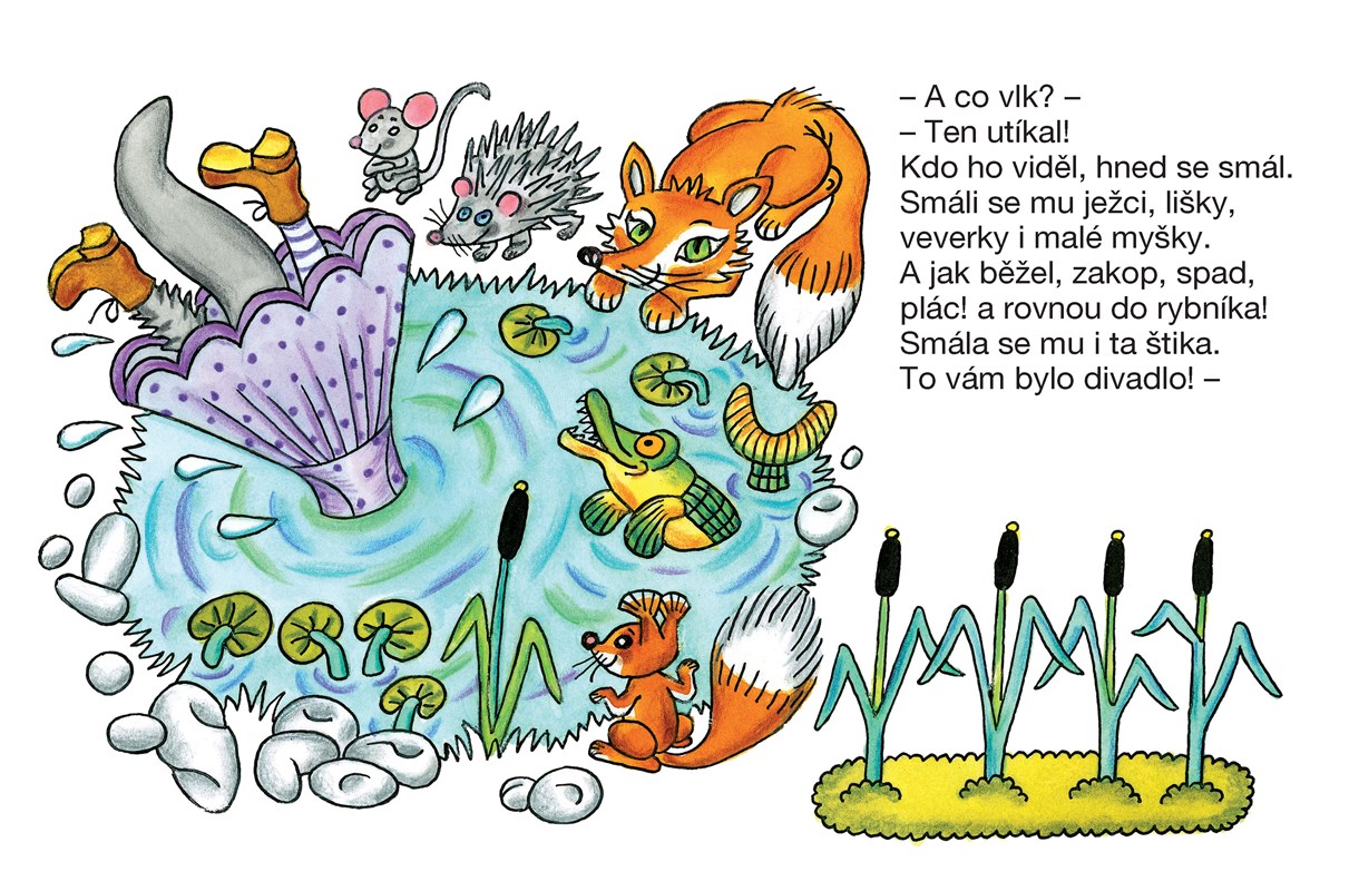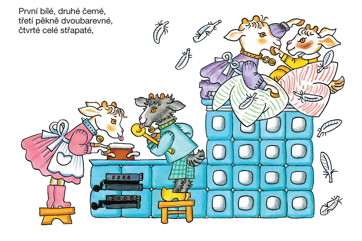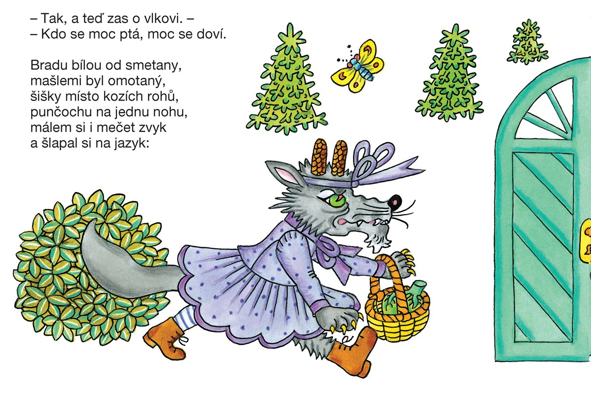 To jsem já, bradička bílá! Otevřte, kůzlátka milá. Nesu sladké zelíčko, tak otevřte maličko! – Těmit...