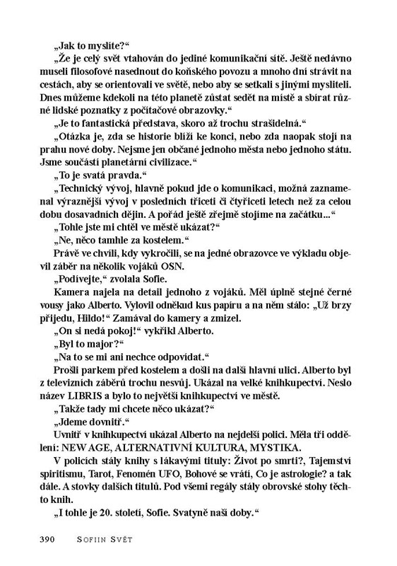 Román o dějinách filosofie Norský učitel J. Gaarder kombinací zdánlivě neatraktivních témat, jako jsou dějiny filosofie a příběh dospívání patnáctileté dívky, vytvořil knížku, která slaví mezi čtenáři neuvěřitelný úspěch; vzápětí po svém norském vydání vyšla v desítkách zemí a v roce 1995 se stala nejprodávanější knihou na světě.