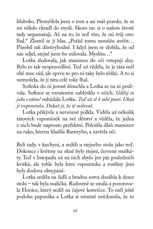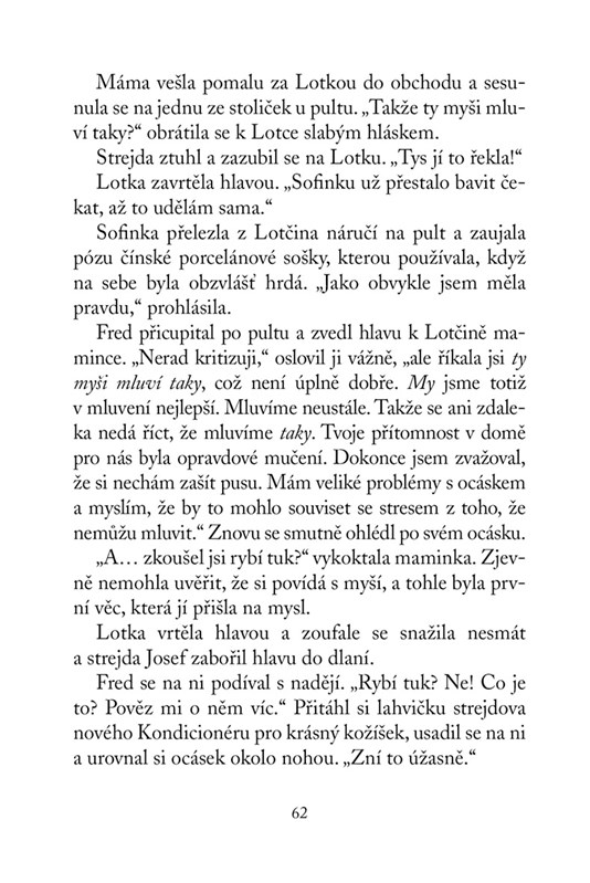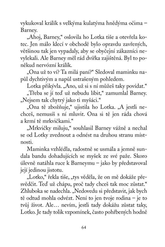 Lotce se stále zdá o jednorožcích. Ví, že mají nějaké potíže a nutně potřebují její pomoc. Co má ale udělat? A stihne to vůbec? Její maminka se totiž už brzy vrátí ze zahraničí, a i když se na ni strašně moc těší, nedokáže si představit, že bude muset opustit strýčka a jeho kouzelný obchod s mluvícími zvířaty. Co tomu její chlupatí kamarádi řeknou?