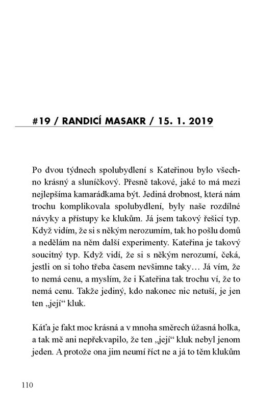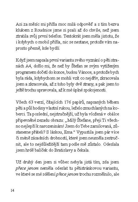 Styky s Emou jsou deníkem tohoto randění, jakýmsi příběhem na pokračování, v němž se spousta postav každý týden mění, některé se pár týdnů zdrží a některé zůstanou až do konce…
