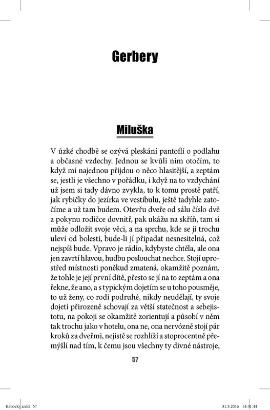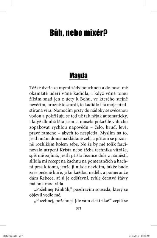 Nechte se strhnout upřímnou zpovědí hlavních hrdinek, kde nechybí ironie, humor, bolest, napětí, nenávist ani láska. Kde se emotivní příběhy vzájemně prolínají, jeden vede ke druhému, k celé řadě zajímavých rozuzlení a potom nerušeně pokračují dál, někdy šťastně, někdy ne, takový už je život.