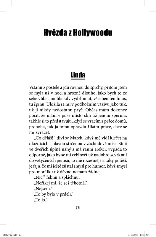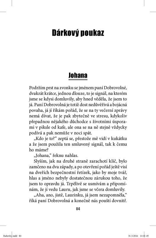 Napadlo vás někdy, co řeší milenka ženatého muže a jaká je ve skutečnosti ta příšerná manželka, o které jí on vypráví? Nebo proč má sestra manželky tak špatný vztah se svojí dcerou? Jak se vlastně cítí ta patnáctiletá holka, na kterou si rodiče nikdy neudělají čas? A kam se vlastně poděly ty peníze? Kdo je vzal, kdo je ztratil, kdo je utratil, kdo je našel a kdo je bude muset vrátit?