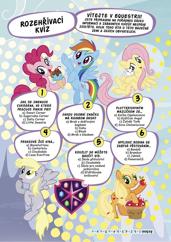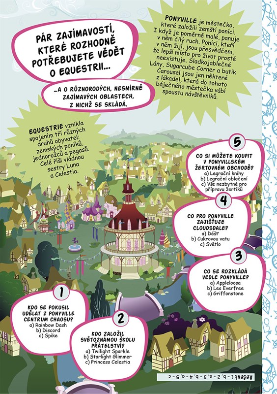 Vyzkoušejte si, jak dobře znáte svět My Little Pony! Kvíza a hádanky otestují vaše znalosti poníků, jejich přátel i protivníků a spousta zajímavostí a faktů vám pomůže doplnit a uspořádat všechny informace. Tato knížka nesmí chybět žádnému fanouškovi kamarádek z Ponyville!