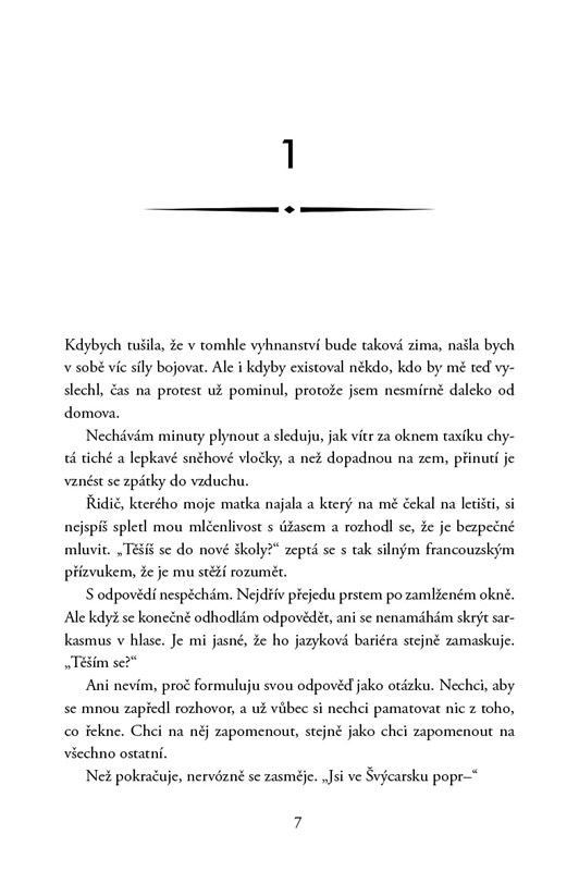O devět měsíců později Caru stále stravuje vina a zármutek, bojuje sama se sebou. Matka ji proto pošle na internátní školu ve Švýcarsku, kde nikdo nezná ji, ani její minulost. A tak to má i zůstat. Noví spolužáci Ren a Hector to ale vidí jinak. Jsou rozhodnuti rozbít zdi, které kolem sebe Cara tak pečlivě vystavěla, a vrátit ji zpět do života. A Cara možná i chce, aby se jim to povedlo… zvláště Hectorovi, který ji zřejmě chápe jako nikdo jiný. Čím blíž se však k němu dostává, tím víc se jí vzdaluje G a vzpomínky na ni.