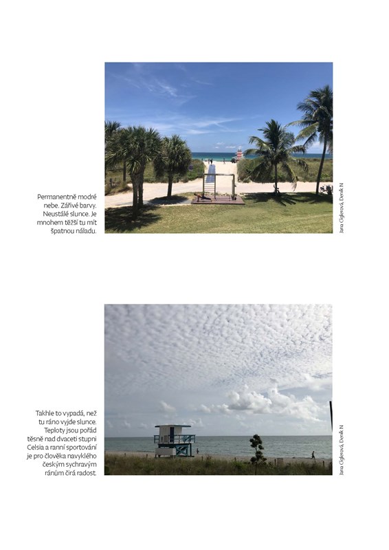Americký deník novinářky Deníku N Jany Ciglerové obsahuje osobní postřehy a zkušenosti z běžného života na Floridě, kde žila v posledních třech letech. Jako Češka adaptující se na život mezi převážně Latinoameričany přináší konkrétní neobvyklé postřehy o tom, jak odlišně se v tak národnostně pestré společnosti žije a jak Čechům známé životní situace řeší místní lidé.