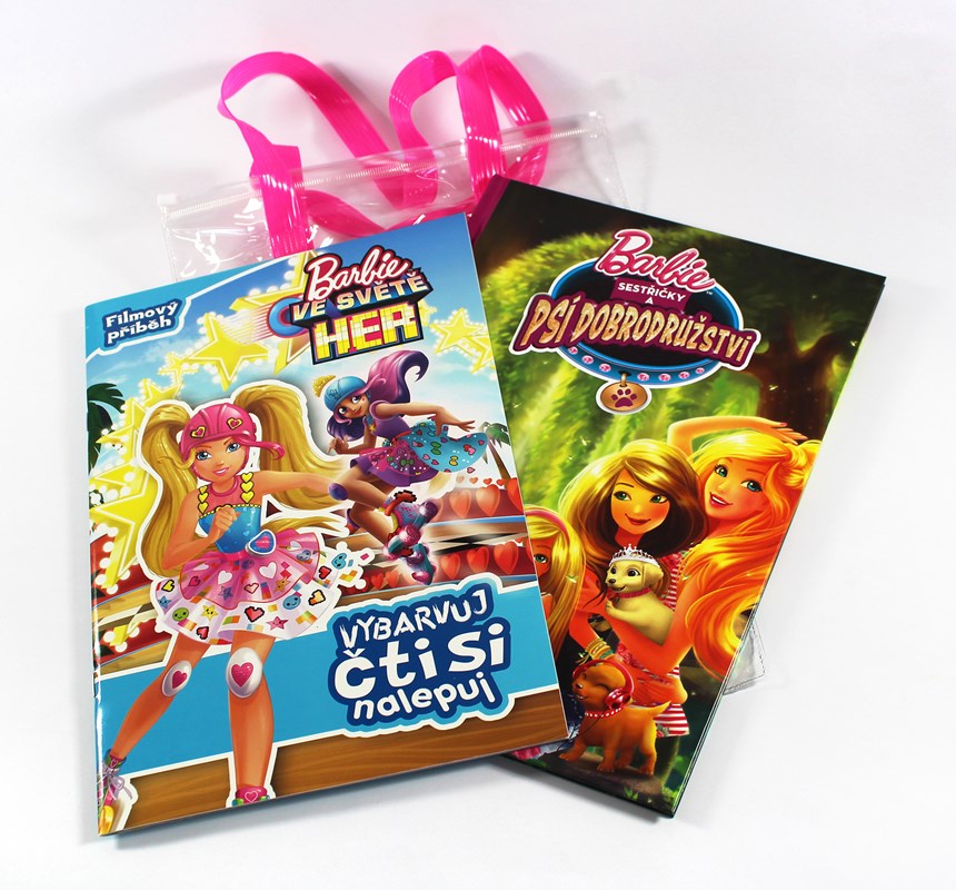 Čtěte si s Barbie! V knížce Psí dobrodružství se dozvíte, co zažili Barbie, sestřičky a jejich pejsci na prázdninách u babičky. O napětí nebude nouze, protože se všichni společně vypraví hledat poklad. V druhé knížce se pobavíte nad příběhem, ve kterém se Barbie stane součástí počítačové hry. Tento příběh doplňují pěkné samolepky.