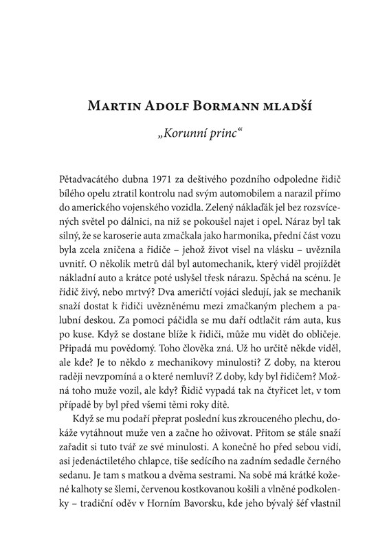 Jak se potomci nejvyšších představitelů nacismu vyrovnali s následky války a vzpomínkami, které je pronásledovaly? Někteří se rozhodli odmítnout svou minulost. Jiní ne. Někteří odsoudili své otce. Ostatní je až do konce bezpodmínečně uctívali. Tania Crasnianski zkoumá ve své knize zodpovědnost potomků chycených někde mezi stigmatizací, uctíváním a ztrátou paměti. Sledováním jejich neopakovatelných zkušeností zkoumá otázku, zda a jak tuto zodpovědnost za činy a vinu svých rodičů nesou.