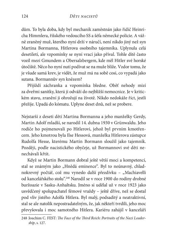 Fascinující příběh dětí osmi klíčových postav Třetí říše – Himmlera, Göringa, Hesse, Franka, Bormanna, Speera, Hösse a Mengeleho – a jejich cesty od potomků hrdinů k potomkům zločinců.