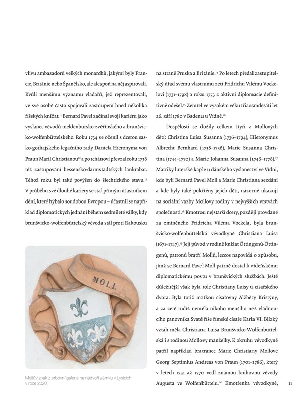 Bernard Pavel Moll. Autoři se věnují jak Mollovu životopisu a společenským kontaktům, osudům sbírky od jejího vzniku ve druhé polovině 18. století až po období, kdy se dostala do Brna, tak uspořádání a obsahu sbírky, která čítá přibližně 8?000 archů map a vedut a je zde prezentována na více než osmdesáti ukázkách.