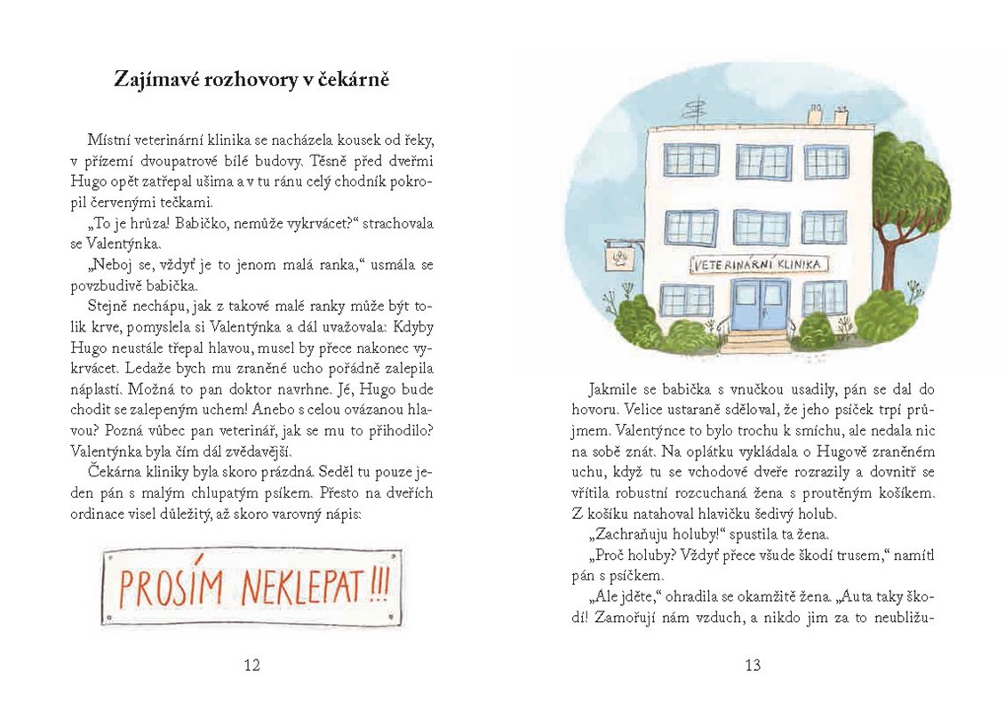 Valentýnka je holčička s nevšedními nápady, na které vždycky už netrpělivě čekají nejlepší kamarádi Jonáš, Péťa a Zuzka. Valentýnka žije s rodiči, babičkou, tetou, strýcem a psem Hugem ve starém domě se zahradou. Má pokojíček v podkroví, kde ráda hraje na klávesy a skládá písničky. Tentokrát Valentýnku k nové hře inspiruje její Hugo, který má zraněné ucho. Po návštěvě veterinární kliniky holčička kamarádům navrhne, že si společně zařídí ordinaci. Budou léčit zvířátka! Každý hned s nadšením přináší všelijakou havěť, ale pak přijde Péťa s drozdem, který má poraněné křídlo. Poradí si i s ním malí veterináři?