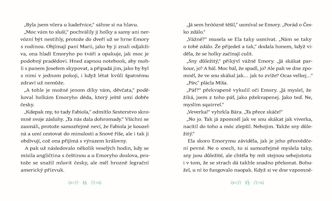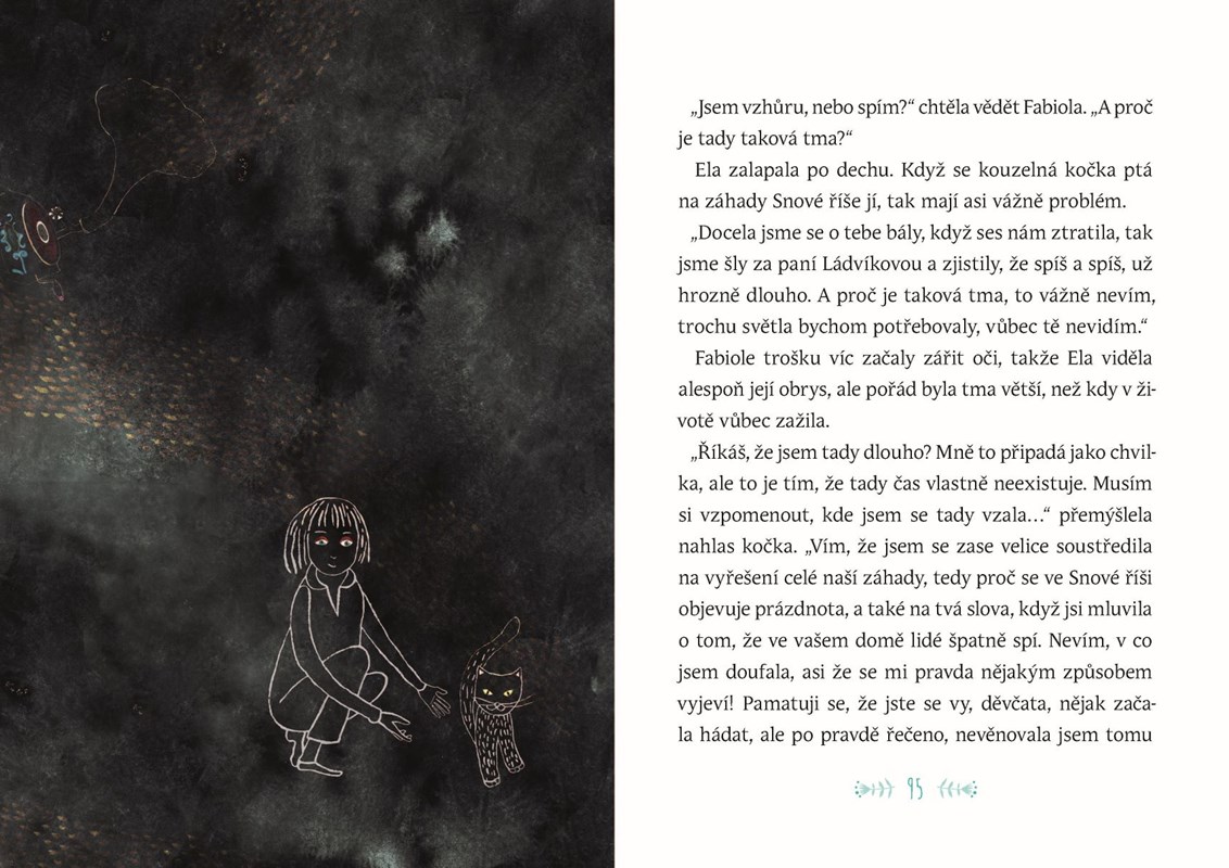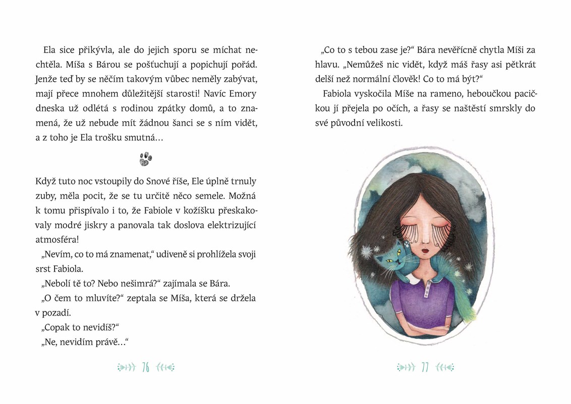 Kouzelná kočka Fabiola tentokrát nepřenese Sesterstvo do minulosti, ale do říše snů! Začínají se tam totiž dít moc divné věci. V Elině ulici navíc nikdo nemůže v klidu spát, všichni se pořád bezdůvodně budí a ráno jsou pak strašně mrzutí. Že by to spolu nějak souviselo? Ela s Bárou a Míšou se v doprovodu neobyčejné kočky s tím nejhebčím kožíškem pouštějí do pátrání. O tajemno a dobrodružství při tom rozhodně nebude nouze!