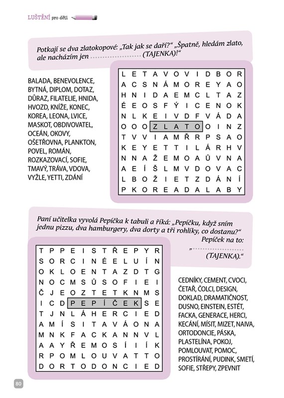 Křížovky, osmisměrky, sudoku či spojovačky a k tomu navíc vtipy o zvířatech, škole, Pepíčkovi i Hruvínkovi. Roztoč mozkové závity a pusť se do toho!