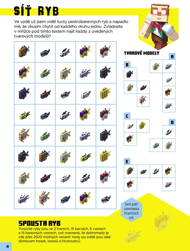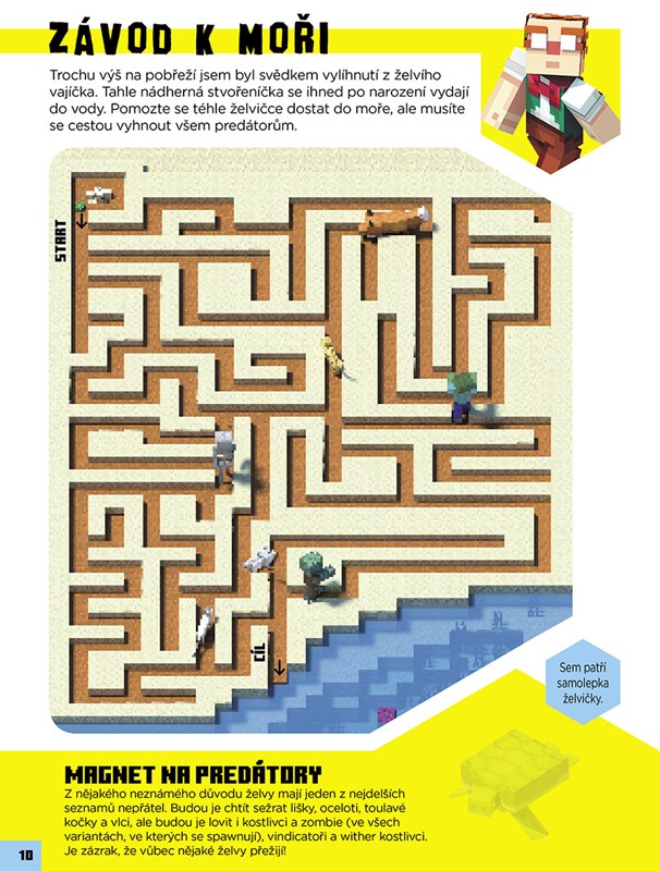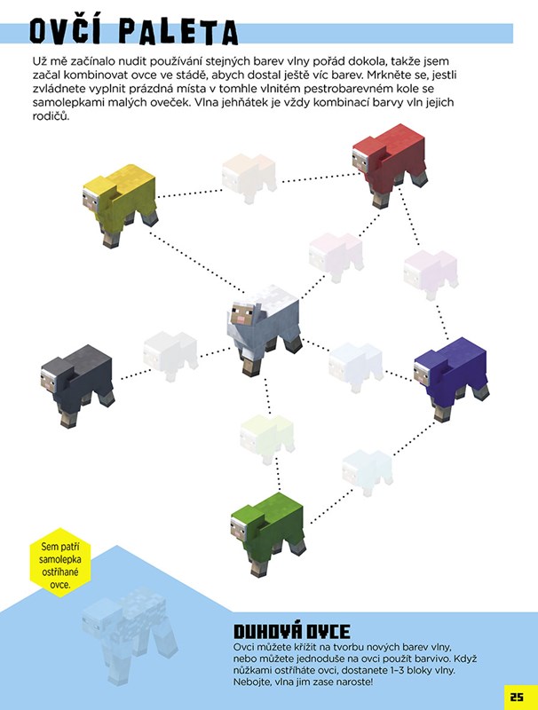 Stejně jako celý svět Minecraftu je i tato oficiální kniha plná malých i velkých tvorů z různých biomů. Naučíte se sestavit karavany lam, vytvářet různobarevné ovečky, pomáhat výstřednímu Montymu přepravit slepice a lišky přes řeku, starat se o želvy nebo plavat s delfíny. S tolika aktivitami a víc než 500 úžasnými samolepkami si užijete spoustu zábavy!