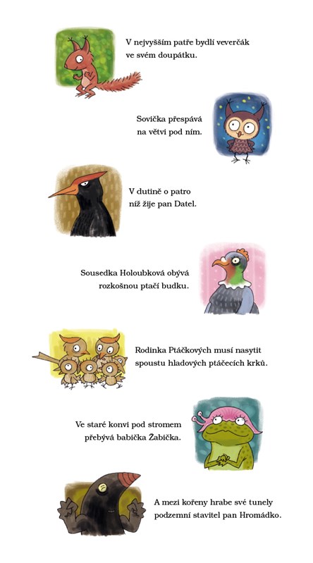Napadlo vás někdy, že strom je vlastně vysoký dům? V každém patře někdo bydlí, a kolik obyvatel strom má, tolik příběhů se tam odehrává.