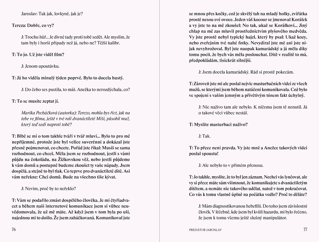 Internet je jediné místo, které neodděluje svět dětí a dospělých. Režiséři Vít Klusák a Barbora Chalupová založili na internetové seznamce fiktivní profily tří dvanáctiletých dívek jako výchozí bod výbušného dokumentu o internetových predátorech s názvem V síti. Do pěti hodin se jim ozvalo přes osmdesát mužů, během pár dnů jich bylo už přes dva tisíce. V navazujícím souboru příběhů a rozhovorů najdete hlubší rozbor postav z filmu, který vyvolal obrovský rozruch ještě před vlastním odvysíláním.