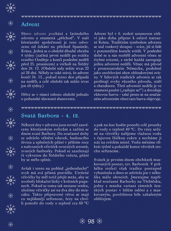Praktický průvodce nejznámějšími českými lidovými svátky, tradicemi a obyčeji, který vám však prostřednictvím svých stránek nenabídne jen jejich suchý výčet, ale naopak vás díky praktickým foto návodům inspiruje k vlastní výtvarné či kulinářské tvorbě.