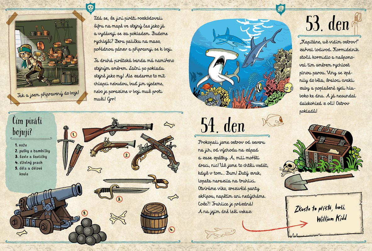 Pravé pirátské dobrodružství už čeká! Interaktivní kniha se samolepkami i lodním deníkem.