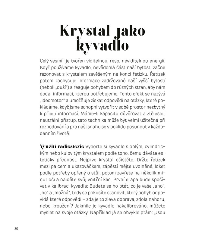 Průvodce krystaly a jejich každodenním používáním (na těle, doma, během meditací či aktivit). Naučte se naprogramovat svou pohodu, používejte kameny jako orákulum nebo jako kyvadélko, přijměte jejich prostřednictvím informace o tom, jak zacházet se svými přáními.