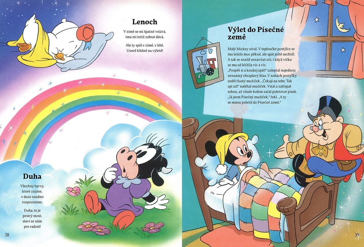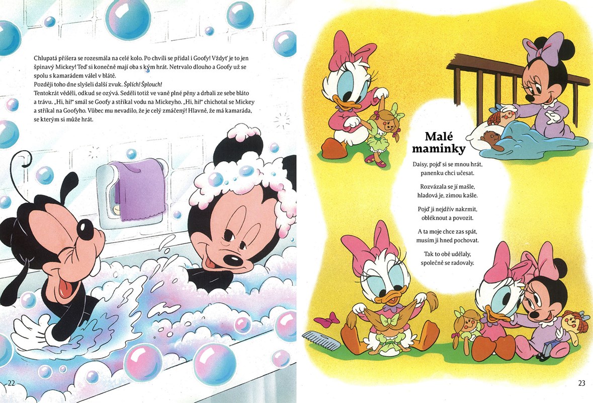 S Disneyho hrdiny vyrůstá už několikátá generace. Milované pohádky na dobrou noc se nyní opět vracejí, aby na cestě do říše snů doprovodily ty nejmenší děti a jejich rodičům připomněly dětství. Pohádky a hravé básničky doprovázené půvabnými ilustracemi zvou do kouzelného světa Mickeyho, Minnie a jejich přátel z časů, kdy byli malými, roztomilými batolaty.