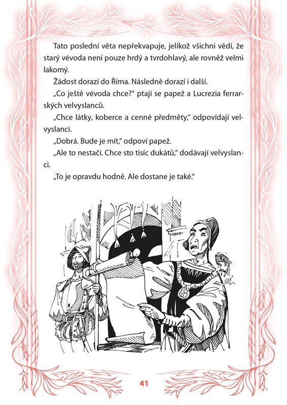 Vyprávění této knihy se točí kolem Lucrezie, milované dcery papeže, která byla často jen loutkou ve hře mocného otce. Samozřejmě měla svoje city a přání, vždy je ale musela podvolit zájmům Vatikánu a především papeže. Dcery v tu dobu zkrátka sloužily k tomu, aby díky vhodnému sňatku rozšiřovaly vliv a postavení celé rodiny.