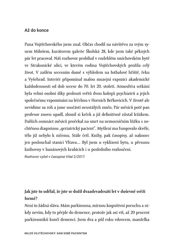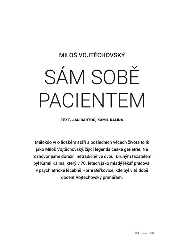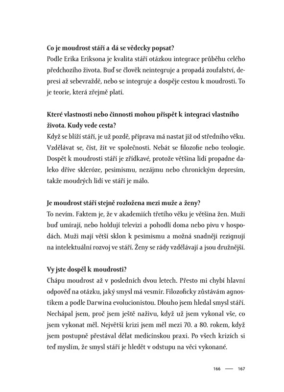 Rozhovory vznikaly během deseti let pro časopis Vital, který spojuje generace tím, že píše i o stáří – takovém, jaké je a jaké by být mohlo. A píše o něm tak, aby to bavilo i třicátníky. Stáří je totiž zatím jediný známý způsob, jak se dožít vysokého věku.