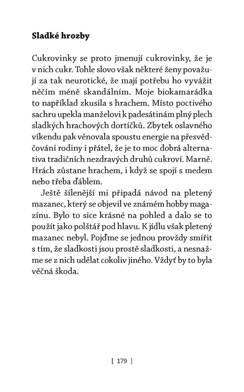 Vstupte do světa autorky vtipných sloupků, na kterou povinnosti stojí frontu, ale ona už moc dobře ví, jak v tom plavat a na koho co hodit. Ostře nabroušené texty vás nejen pobaví, ale také inspirují k tomu, abyste ovládly všech osm zbraní zkušené ženy: grácii dámy, cynismus manželky, oddanost dcery, píli hospodyňky, nadhled matky, sebevědomí femme fatale, urputnost kazatelky i nevypočitatelnost kalamity. A svět vám bude ležet u lodiček!