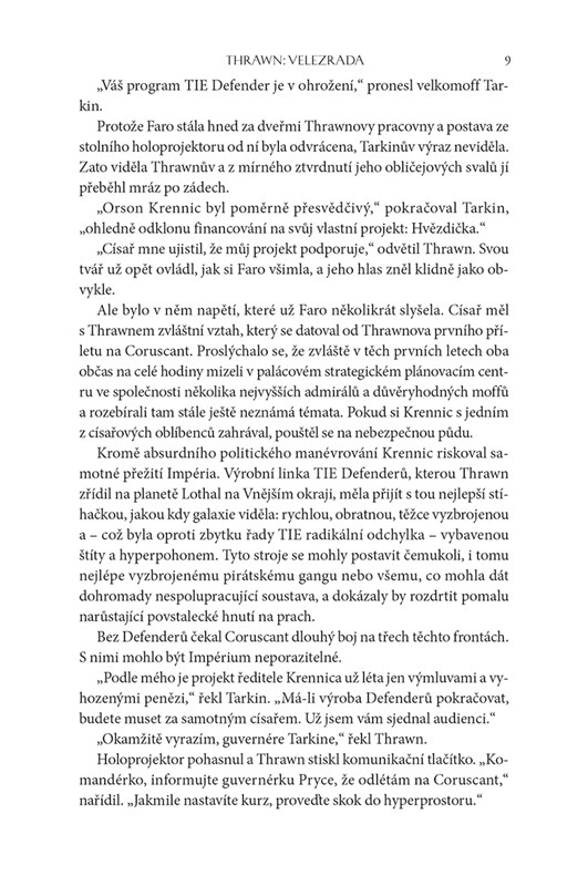 Nyní, když je jeho obranný program TIE zastaven ve prospěch Hvězdy smrti ředitele Krennica, Thrawn zjišťuje, že rovnováha moci v Impériu nezávisí pouze na míře vojenské bystrosti nebo taktické vyspělosti. Ani ty nejlepší mozky nemohou úspěšně soupeřit se silou, která dokáže ničit celé planety.