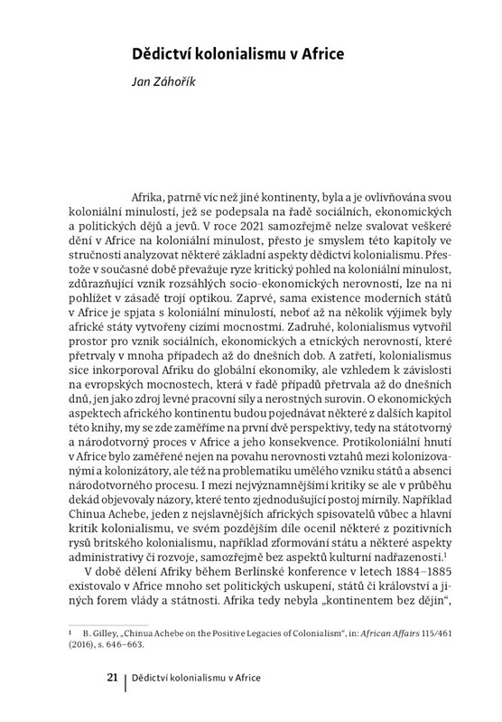 Africká současnost a budoucnost závisí na celé řadě faktorů. Od roku 1960, kdy hned sedmnáct zemí získalo nezávislost, urazil africký kontinent značný kus cesty, která byla mnohdy komplikována jak vnějšími faktory, tak slabými a nerozvinutými institucemi i mnoha dalšími problémy. Na druhé straně nelze nevidět dramaticky se měnící poměry v řadě zemí kontinentu. Budoucnost Afriky však spočívá v překonání dědictví minulosti, ať již té koloniální, nebo té z dob studené války. V úsilí o budování inkluzivní společnosti, která nebude postavena na vládě úzké elity a která bude schopna diverzifikovat svoji ekonomiku a bránit se tak nečekaným otřesům globální ekonomiky. Mnohé africké země mají potenciál hrát v 21. století významnou roli na mezinárodní scéně. Vzestup Afriky, její stabilita a ekonomická diverzifikace by měly být prioritou Evropy, která byla v posledních letech znepokojena vlnami migrantů či sleduje s obavami vzestup islámského fundamentalismu především v západní Africe. Zároveň by však Afrika neměla hrát roli pouhého dodavatele surovin. K jejímu růstu a stabilitě i prosperitě bude nutná industrializace, rozvoj digitálních technologií i environmentální stabilita a zemědělská soběstačnost. Všechny tyto aspekty a mnohé jiné budou nastíněny v následujících kapitolách.