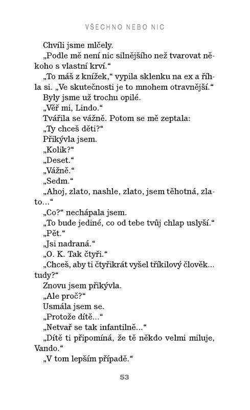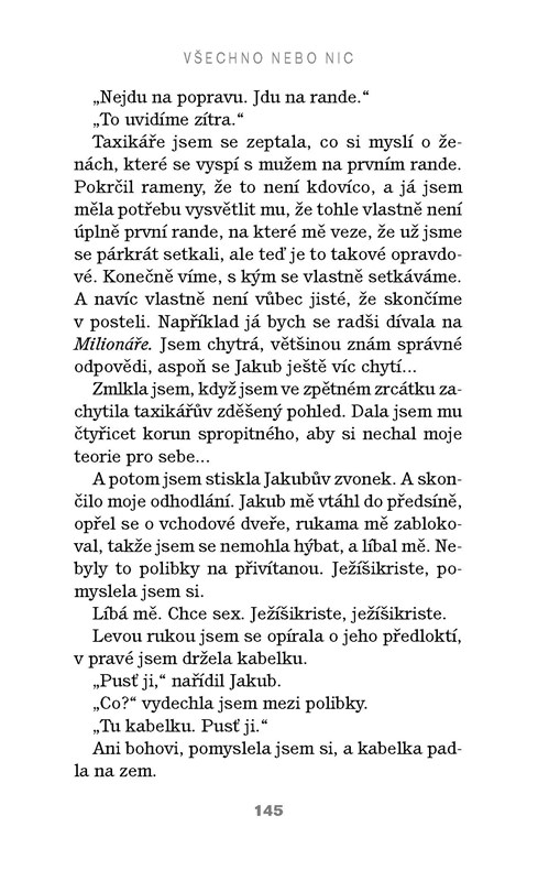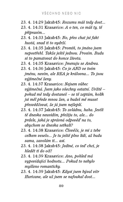 Velmi otevřená kniha o tom, co dokáže jeden obyčejný muž udělat s racionálně uvažující ženou. Linda, majitelka prosperujícího bratislavského antikvariátu, je úspěšná, inteligentní žena s velkým smyslem pro humor a touhou po opravdové lásce, ale zároveň frustrovaná z několika nevydařených vztahů. Jednoho (ne)šťastného dne se virtuálně seznámí s Jakubem. Pár dní si píšou na internetu, protelefonují spolu celé hodiny a oba mají pocit, že jsou stvořeni jeden pro druhého. Skutečné setkání jejich cit neoslabí, naopak, Linda prožívá Lásku s velkým L a nepochybuje o tom, že našla muže svých snů. Ale jak je na tom Jakub? Je to i proi něj osudový vztah?